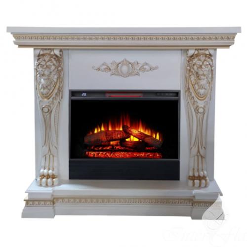 Портал для электрокамина INTER-FLAME Львы под Foton 26 QZ белый с золотой патиной
