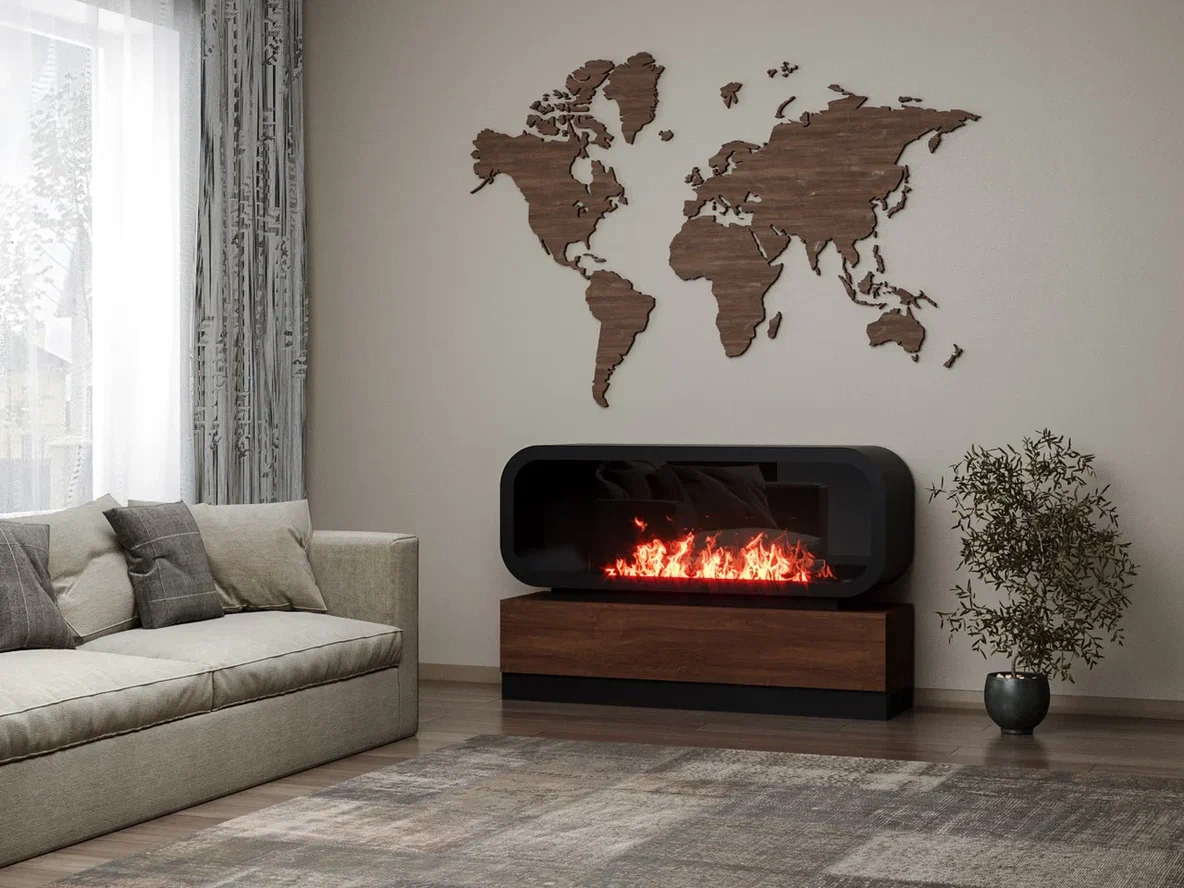 Вы можете заранее включить очаг со смартфона и прийти уже в тёплую атмосферу — для себя, семьи или гостей. Это не «камин ради галочки», а реально работающий центр притяжения в комнате.