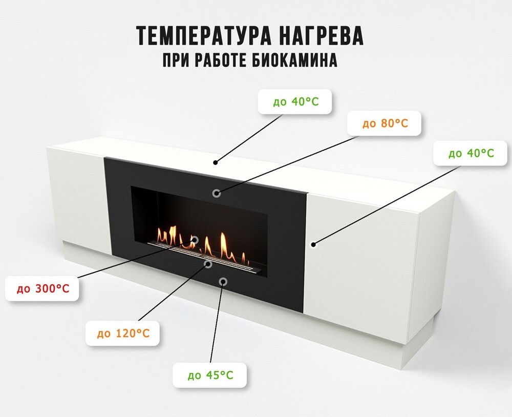 Задняя и верхняя часть очага не соприкасаются с корпусом тумбы и стеной помещения — конструкция «разводит» тепло там, где это нужно. Вы получаете красивое пламя и уверенность, что всё рассчитано производителем, а не держится на «авось».