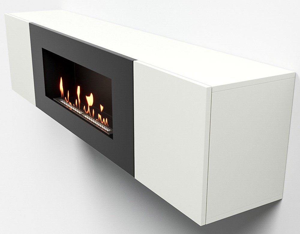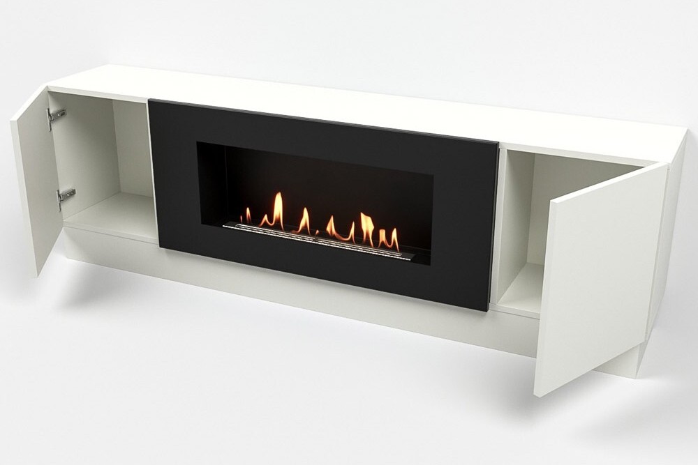 LUX FIRE Тумба универсальная "Байкал" 1600, белая, с биокамином 900