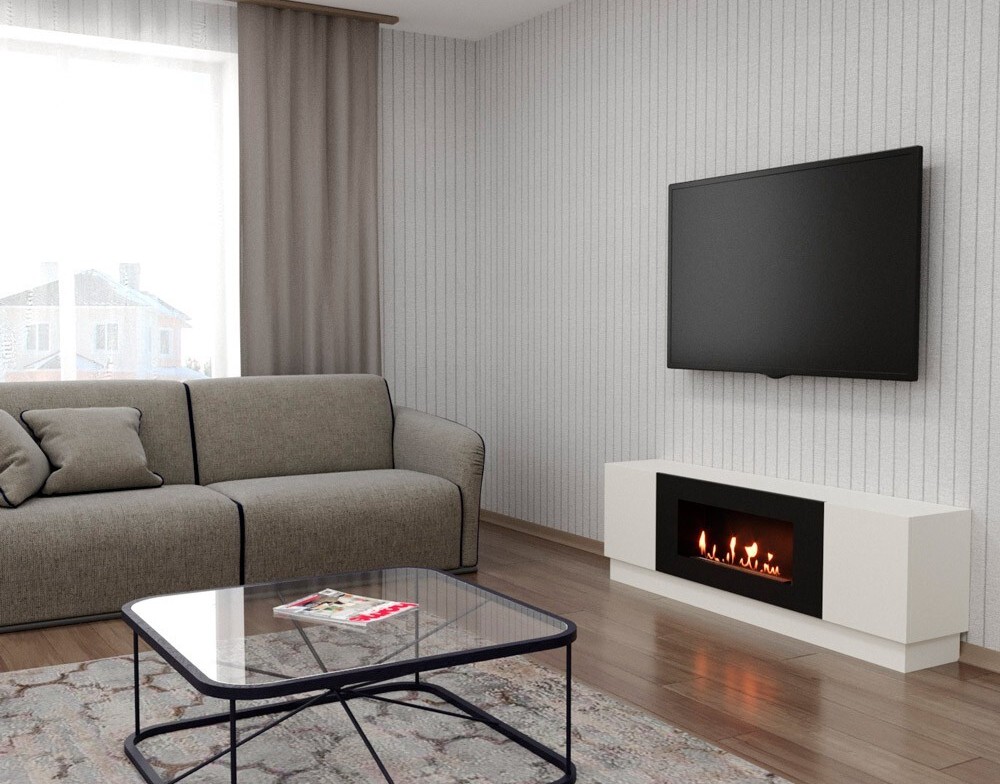 Она заменяет сразу несколько решений: ТВ-зону, тумбу для хранения и атмосферный камин. В итоге вы получаете интерьерный объект, который выглядит как дизайнерская мебель, а не как «ещё одна полка у стены».