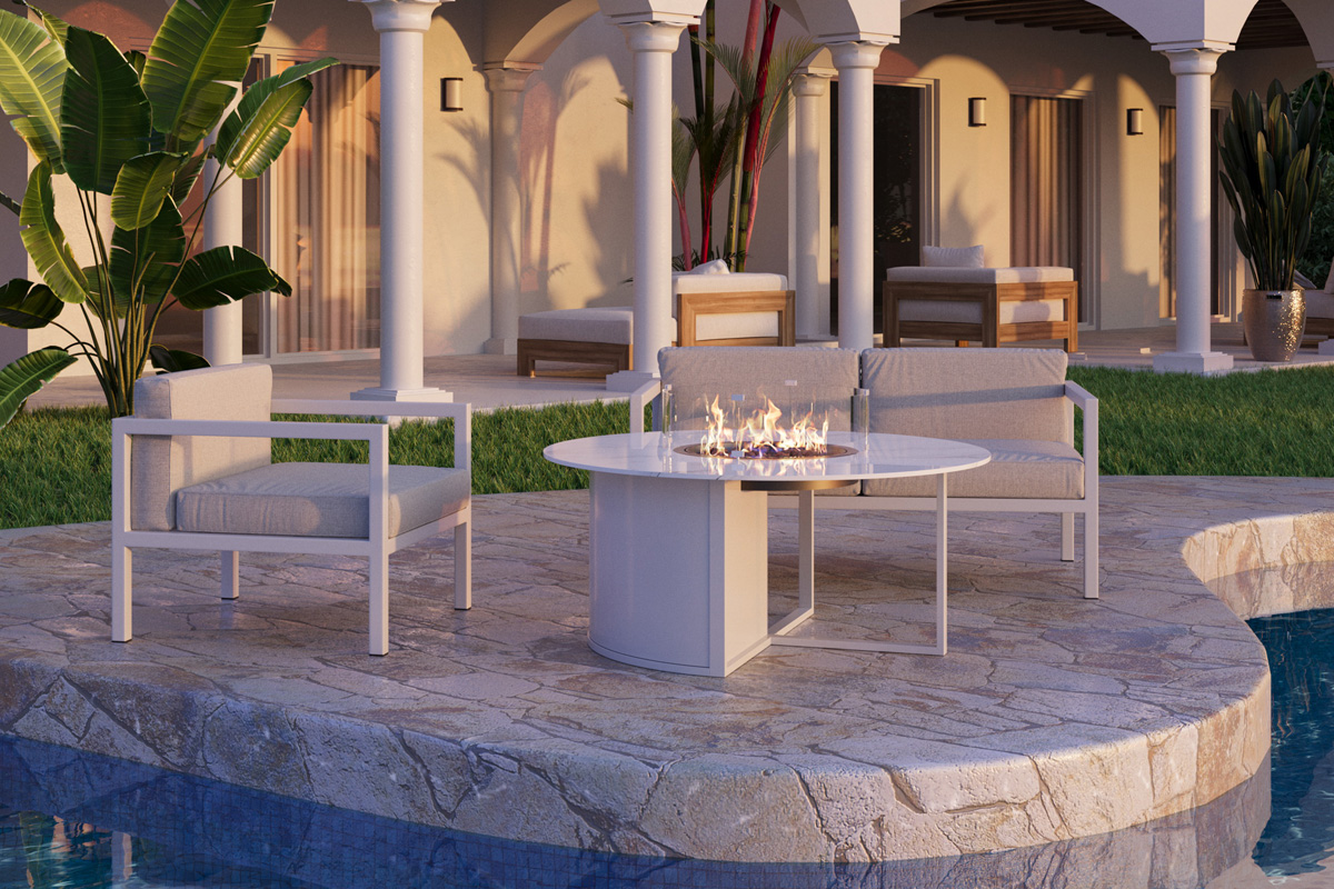 KAMINEX Газовый камин-стол Бромо белый уличный
