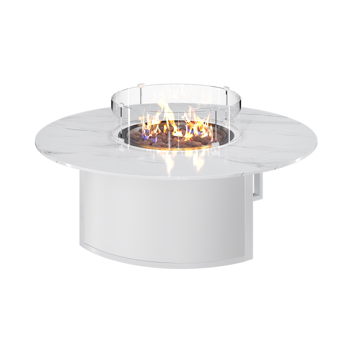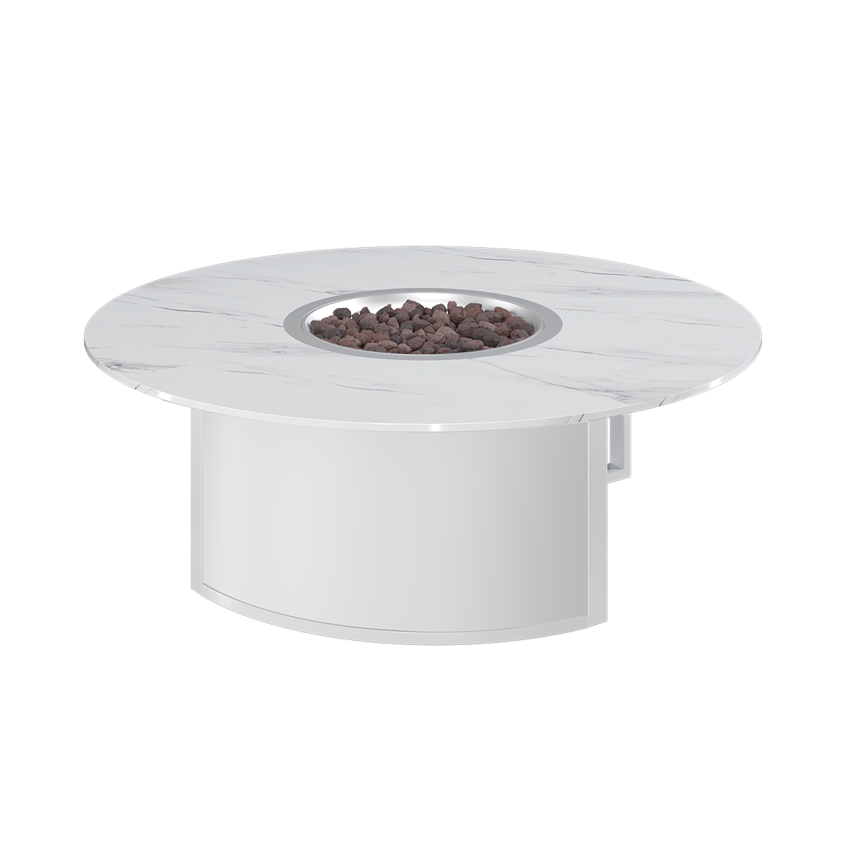 В сочетании со спеченным камнем и алюминием белое исполнение смотрится особенно выигрышно: модель выглядит дорого, современно и стильно. Это удачный выбор для тех, кто хочет не просто поставить уличный камин, а создать пространство, которым приятно любоваться каждый день и которое хочется показывать гостям.
