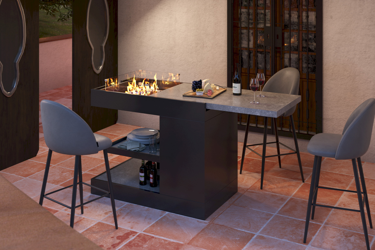 Одна из самых сильных сторон KamineX Эрта Але — барный формат, который делает модель особенно удобной для общения и приема гостей. Такой камин помогает оформить стильную уличную барную зону, где все располагает к неспешным беседам, уютным посиделкам и эффектным мероприятиям на свежем воздухе.