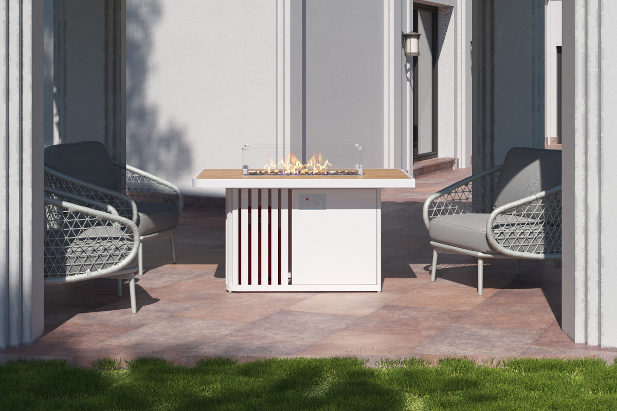 KAMINEX Газовый камин-стол Мерапи белый уличный