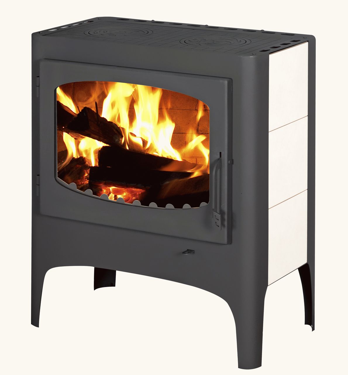Керамическая облицовка придает печи-камину более уютный и завершенный внешний вид. Заднее подключение, боковое открывание дверцы и продуманная конструкция делают установку и ежедневное использование удобными, а подача воздуха извне дополнительно повышает стабильность работы модели.