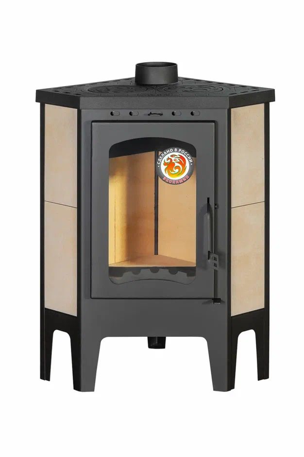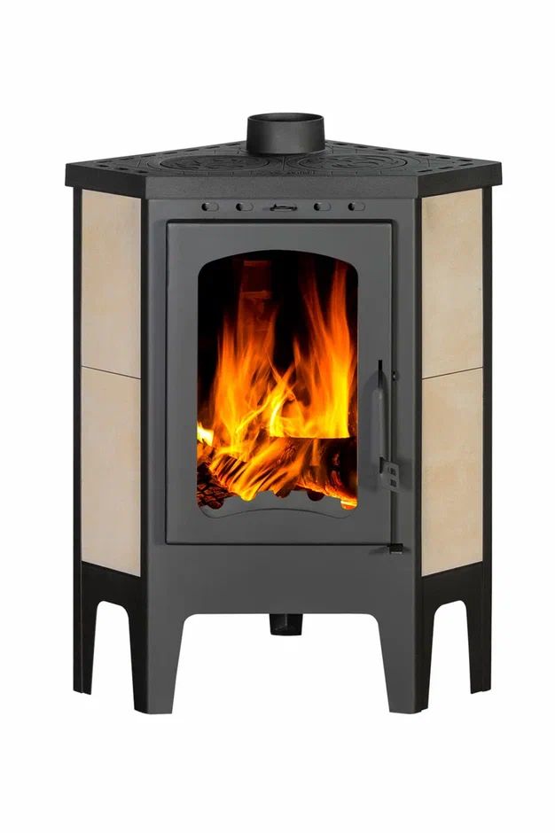 Прямое термостойкое стекло выдерживает температуру до 750 °C и позволяет безопасно наслаждаться видом живого пламени. Даже в компактном угловом формате эта печь-камин создает приятный каминный эффект, наполняя пространство мягким светом, теплом и особой атмосферой спокойствия, которую так ценят в доме и на даче.