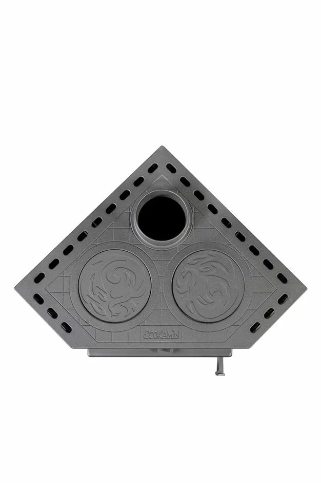 Одним из главных преимуществ этой модели является чугунная варочная плита с двумя конфорками. Это делает печь-камин особенно удобной для дачи или загородного дома, где важно не только обогревать помещение, но и иметь возможность приготовить еду, разогреть обед или быстро вскипятить воду в любое удобное время.