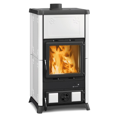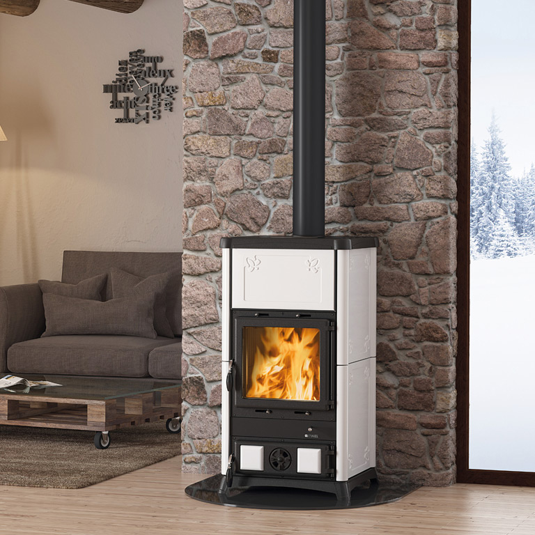 La Nordica Fedora Bianco Infinity — дровяная печь с облицовкой из белой майолики, которая смотрится светло, чисто и аккуратно. Оттенок White Infinity визуально расширяет пространство и легко сочетается с деревом, камнем, светлыми стенами и минималистичной мебелью.