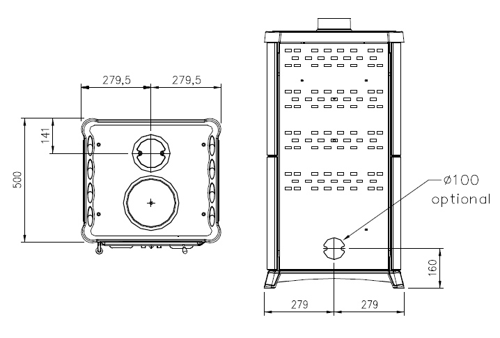 Важной особенностью La Nordica Fedora является наличие варочной поверхности, которая обогатит функциональность устройства. Для подключения к дымоходу используется стандартный диаметр 130 мм.