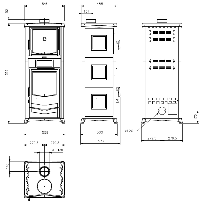 Габариты модели 559×1359×536 мм, вес 195 кг — параметры, которые подчёркивают основательность конструкции и «старший» класс печи. Rossella Plus Forno Evo Liberty Bordeaux — решение для тех, кому нужен не только обогрев, но и готовка на дровах в одном стильном приборе.