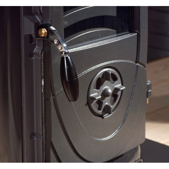 Все печи La Nordica оснащены регуляторами первичного и вторичного воздуха, и Super Junior не исключение. Первичный воздух подаётся через зольник и решётку в направлении топлива — это помогает быстро разжечь дрова и поддерживать стабильное горение.