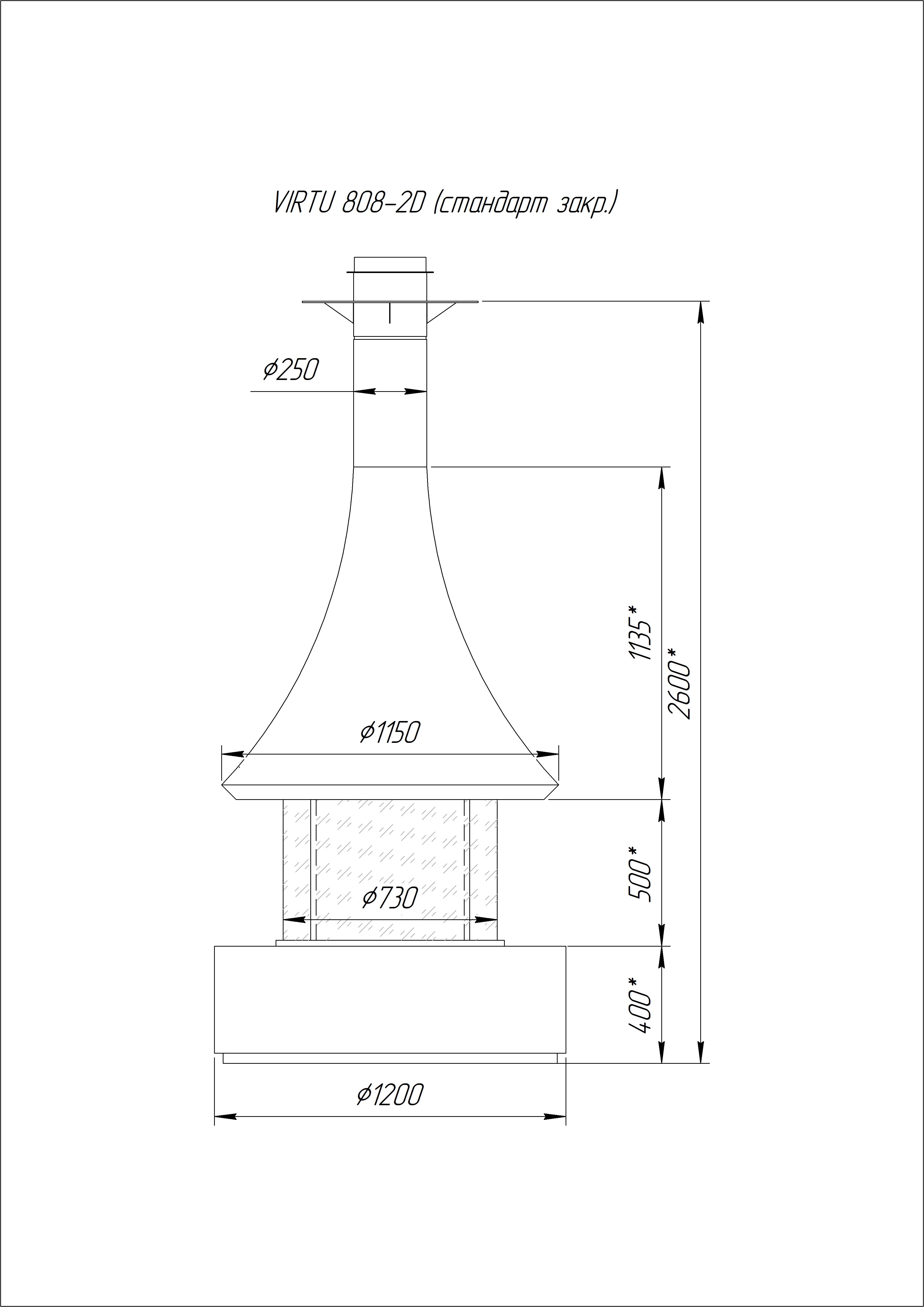 Virtu Центральный 808-2D, подвесной и закрытая топка (4 радиусных стекла)