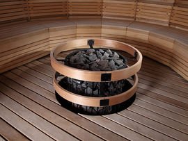 Благодаря круглой форме каменку Harvia Legend можно установить в центр сауны или встроить в полки. Необходимо отдельно приобрести выносной пульт управления.