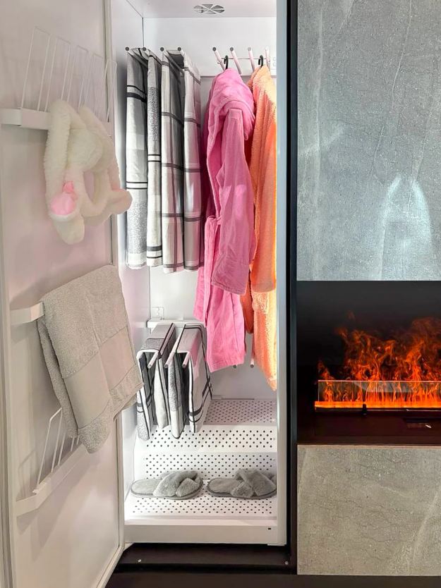 Благодаря индивидуальному изготовлению по размерам шкаф можно встроить практически в любое пространство — от компактной ванной до хозяйственной зоны. Он помогает организовать домашний процесс ухода за одеждой без громоздких сушилок и беспорядка.
